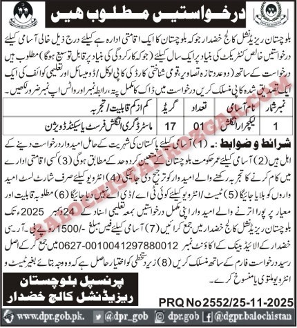 The deadline to submit applications for Balochistan Residential College BRC Khuzdar Jobs 2025 is 24 Dec 2025. It is important to apply before this date, as no applications will be accepted after the deadline. Any applications received after this date will be rejected, so be sure to submit yours on time! Don’t miss out on this opportunity.