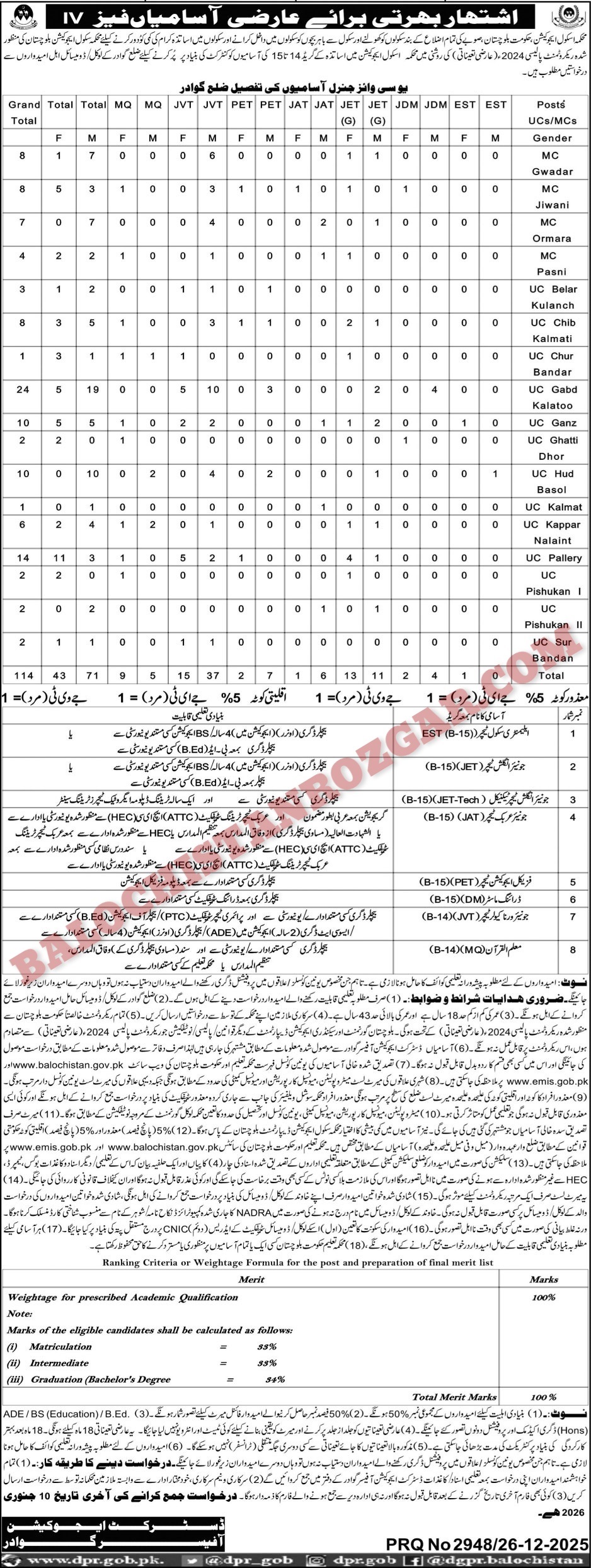 Education Department Gwadar Jobs 2026 has recently announced job vacancies for Gwadar Locals. These Vacancies were announce in today’s local newspaper. This is an opportunity for candidates of Gwadar Local Domicile holders who seeking employment in Gwadar Balochistan. Candidates from Gwadar can now apply for the following jobs vacant (Candidates who fulfill the criteria can apply) It’s good to read the advertisement first Like Jobs Eligibility Criteria, Current Job Qualification Requirements and Education details for the Post which candidates are willing applying. For the following vacants the Concerned department is inviting applications from the candidates of Gwadar for the following Education Department Gwadar 2026 jobs. If you meet the eligibility criteria and possess and other skills (if any) then you may apply.