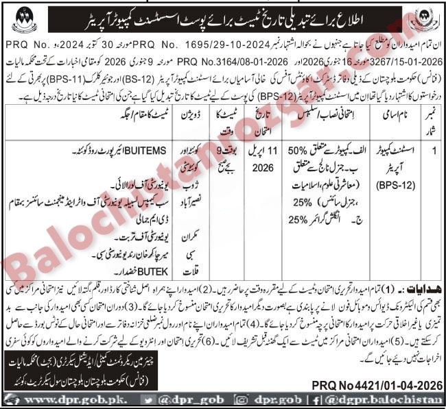 Finance Department Balochistan has scheduled Test/Interview for their vacant post which was published in newspaper. Those candidates From Balochistan who applied for these Finance Department Balochistan vacant jobs are informed that their Test and Interview Shall be conducted on the following schedule below.