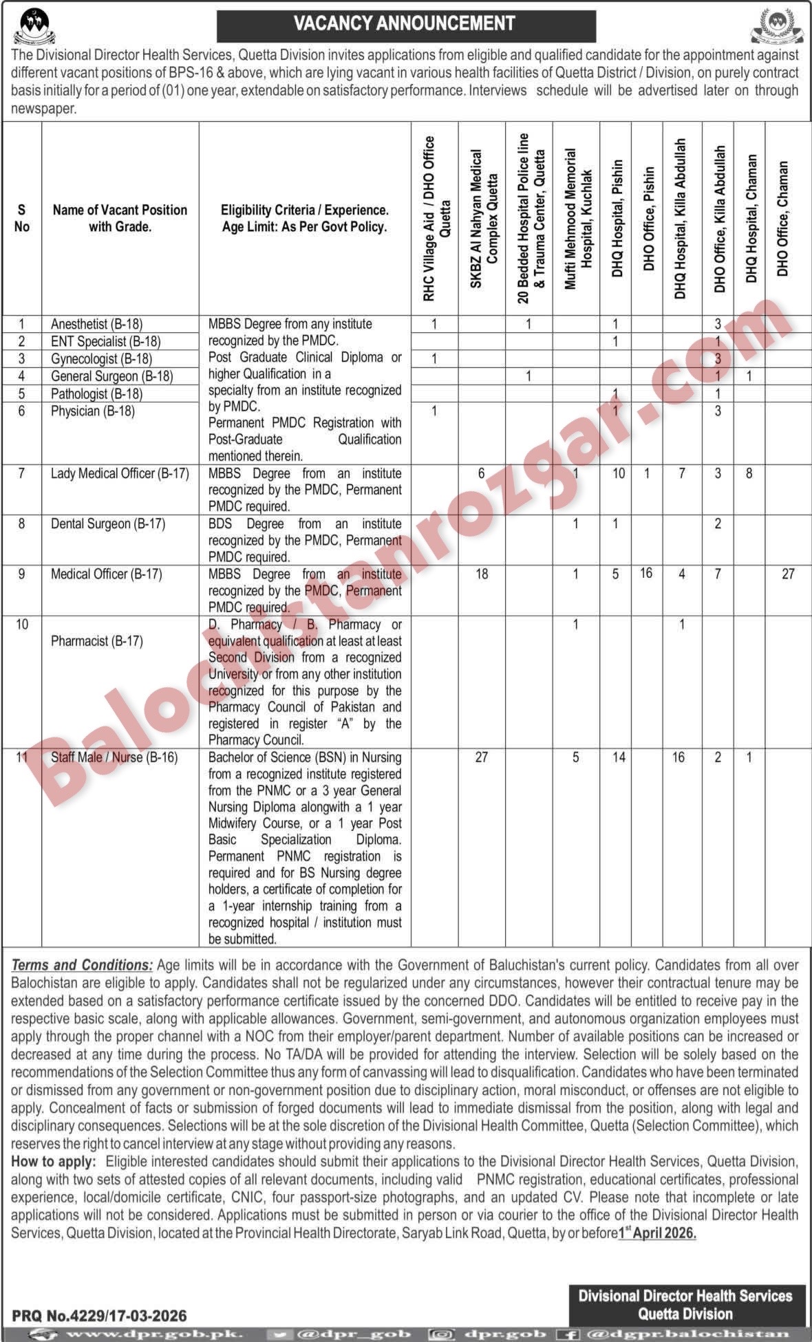 Health Department Quetta Division Jobs 2026 Full Time NEW