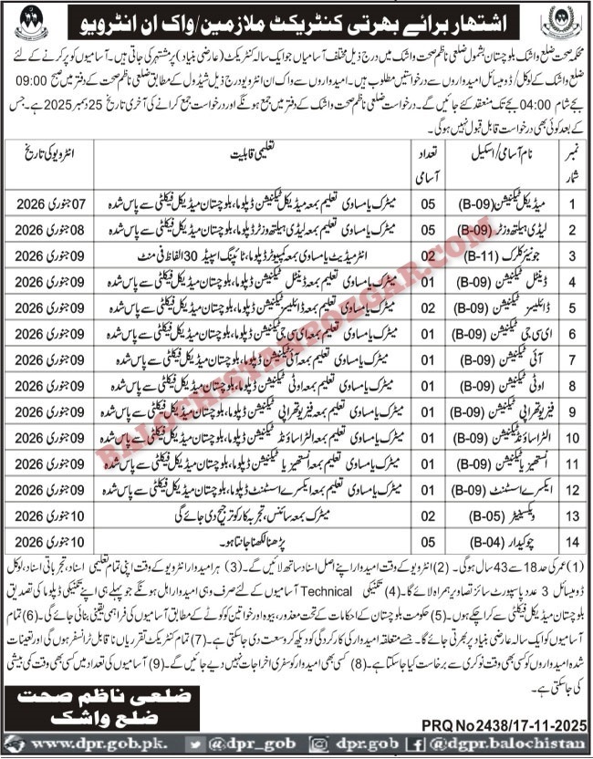 Dear job seekers, the required qualifications for Health Department Washuk Jobs 2025 range from a Matric to a Master’s degree. However, each position has its own educational requirements. It is very important to check the official job advertisement to make sure your qualifications match the job you are applying for.