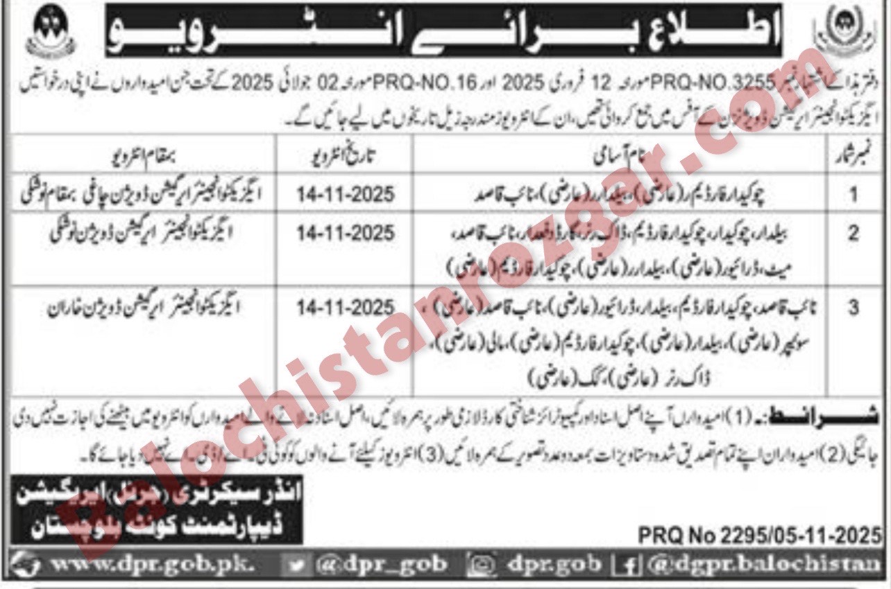 Irrigation Department Balochistan has scheduled Interview for their vacant post which was published in newspaper. Those candidates From Balochistan who applied for Irrigation Department Balochistan vacant jobs are informed that their Interview Shall be conducted on the following schedule below.