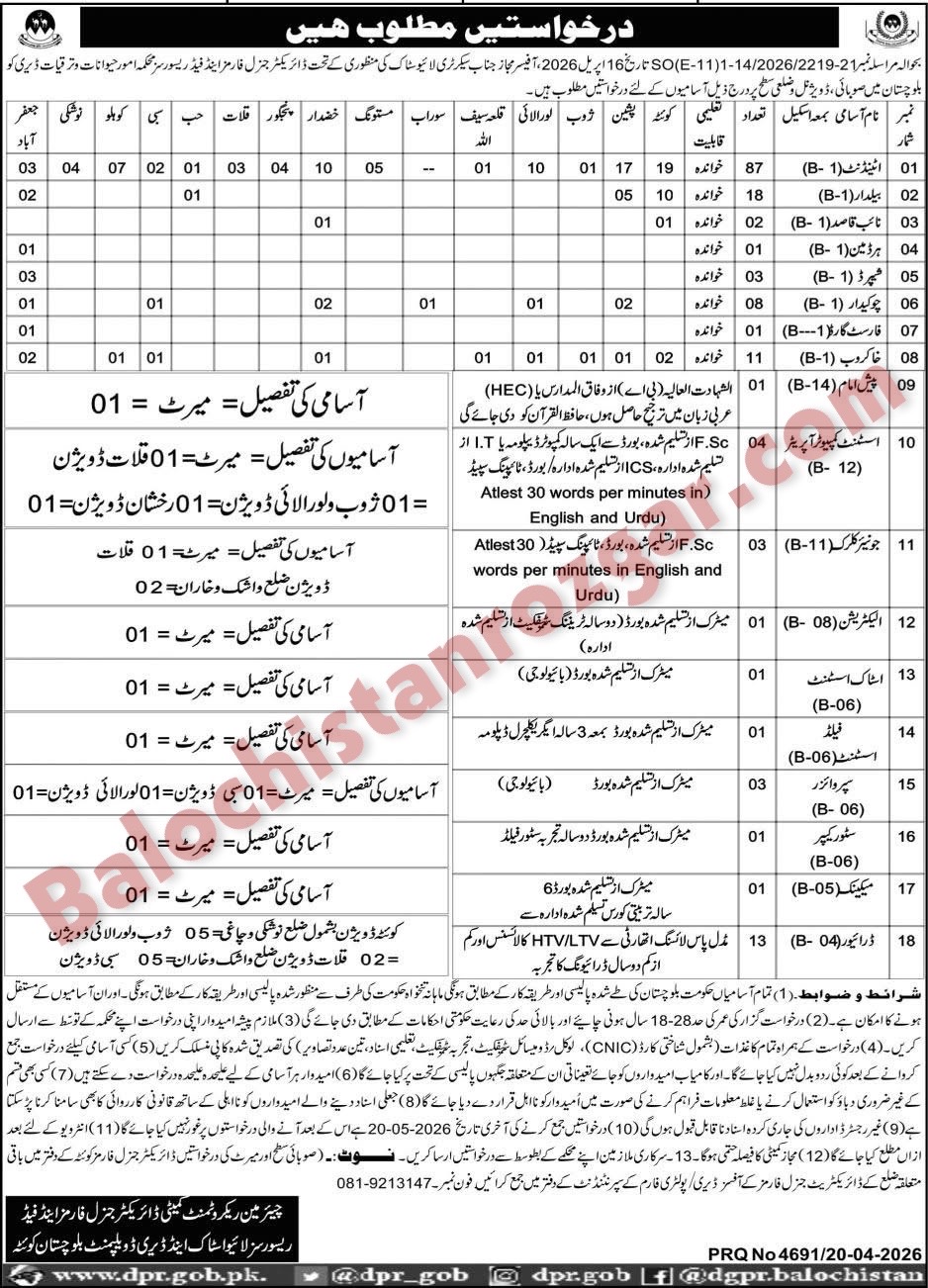 The deadline to submit applications for Livestock and Dairy Development Department Balochistan Jobs 2026 is 20 May 2026. It is important to apply before this date, as no applications will be accepted after the deadline. Any applications received after this date will be rejected, so be sure to submit yours on time! Don’t miss out on this opportunity.