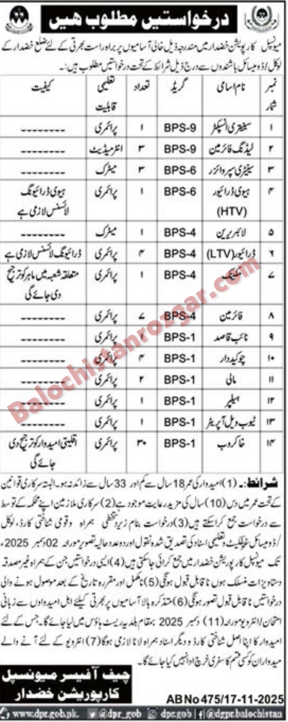 This is the best opportunity for eligible and professional candidates to apply for these Municipal Committee Khuzdar jobs 2025. District Council offering Following job vacancies In Khuzdar. These jobs were announced Jang Newspaper. we have taken the job advertisement there. The Both male and female candidates are eligible to apply for these Municipal Committee Khuzdar Jobs 2025. Candidates who meet the qualification and experience requirements can apply for these jobs. Application procedure for these jobs is defined below, and interested candidates are advised to apply before the closing date after the deadline of the post no application shall be entertained.