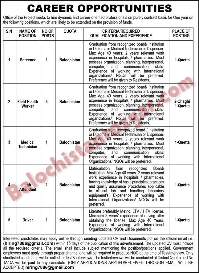 This is the best opportunity for eligible and professional candidates to apply for these NGOs Quetta and chaghi jobs 2026. Department offering Following job vacancies In Balochistan. These jobs were announced Jang Newspaper. we have taken the job advertisement there. The Both male and female candidates are eligible to apply for these NGOs Quetta and chaghi Jobs 2026. Candidates who meet the qualification and experience requirements can apply for these jobs. Application procedure for these jobs is defined below, and interested candidates are advised to apply before the closing date after the deadline of the post no application shall be entertained.