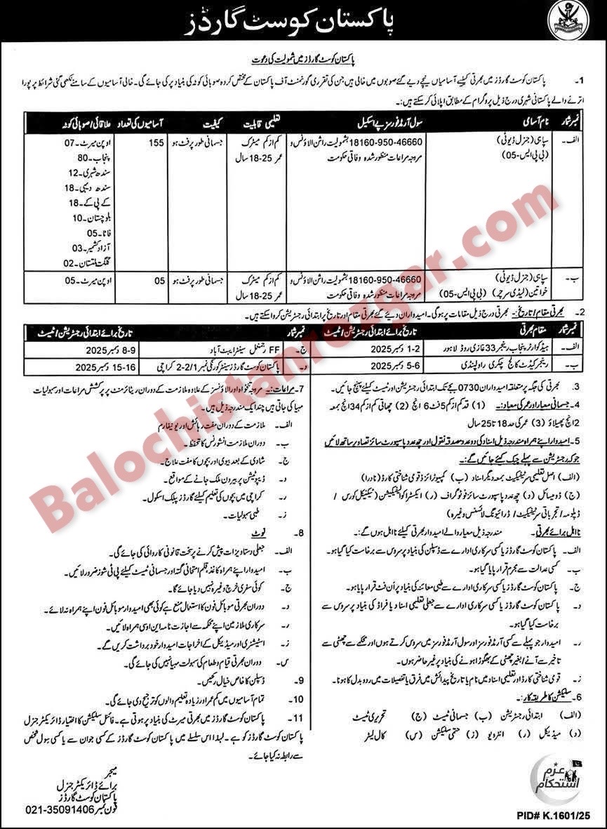 Pakistan Coast Guard PCG Jobs 2025 Balochistan Full Time