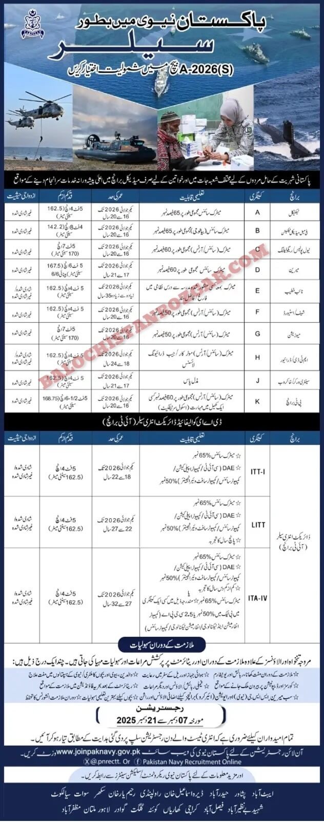 This is the best opportunity for eligible and professional candidates to apply for these Pakistan Navy Sailor jobs 2025. Pakistan Navy offering Following job vacancies for Balochistanalso. These jobs were announced Jang Newspaper. we have taken the job advertisement there. The Both male and female candidates are eligible to apply for thesePakistan Navy Sailor Jobs 2025. Candidates who meet the qualification and experience requirements can apply for these jobs. Application procedure for these jobs is defined below, and interested candidates are advised to apply before the closing date after the deadline of the post no application shall be entertained.