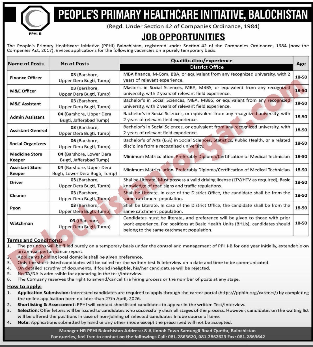 The deadline to submit applications for PPHI Balochistan Jobs 2026 is 27 April 2026. It is important to apply before this date, as no applications will be accepted after the deadline. Any applications received after this date will be rejected, so be sure to submit yours on time! Don’t miss out on this opportunity.