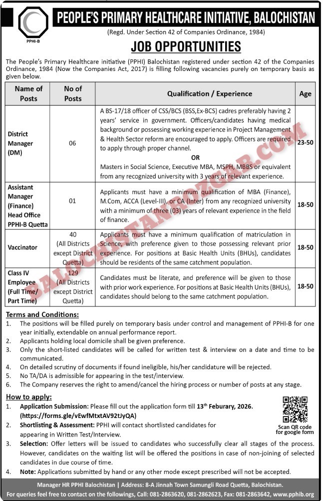 PPHI Balochistan New Jobs 2026 Full Time