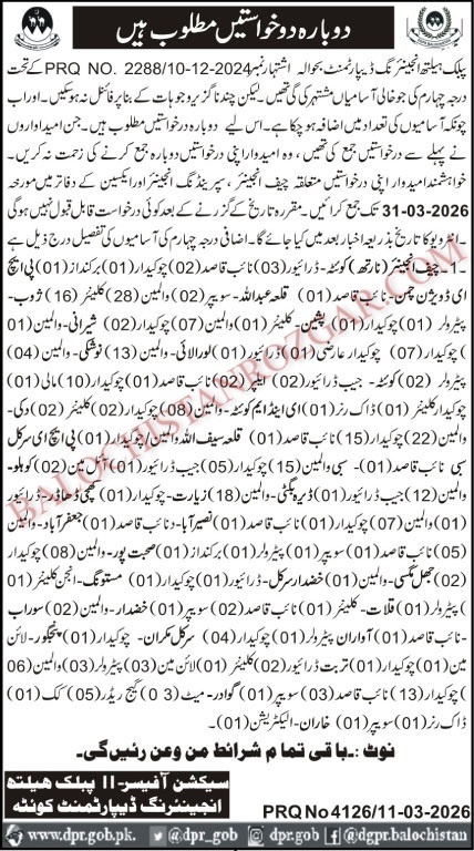 The deadline to submit applications for Public Health Engineering PHE Balochistan Jobs 2026 is 31 March 2026. It is important to apply before this date, as no applications will be accepted after the deadline. Any applications received after this date will be rejected, so be sure to submit yours on time! Don’t miss out on this opportunity.