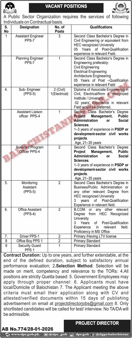 This is the best opportunity for eligible and professional candidates to apply for these Public Sector Organization Balochistan jobs 2026. Public Sector Organization Balochistan offering Following job vacancies In Balochistan. These jobs were announced Jang Newspaper. we have taken the job advertisement there. The Both male and female candidates are eligible to apply for these Public Sector Organization Balochistan Jobs 2026. Candidates who meet the qualification and experience requirements can apply for these jobs. Application procedure for these jobs is defined below, and interested candidates are advised to apply before the closing date after the deadline of the post no application shall be entertained.