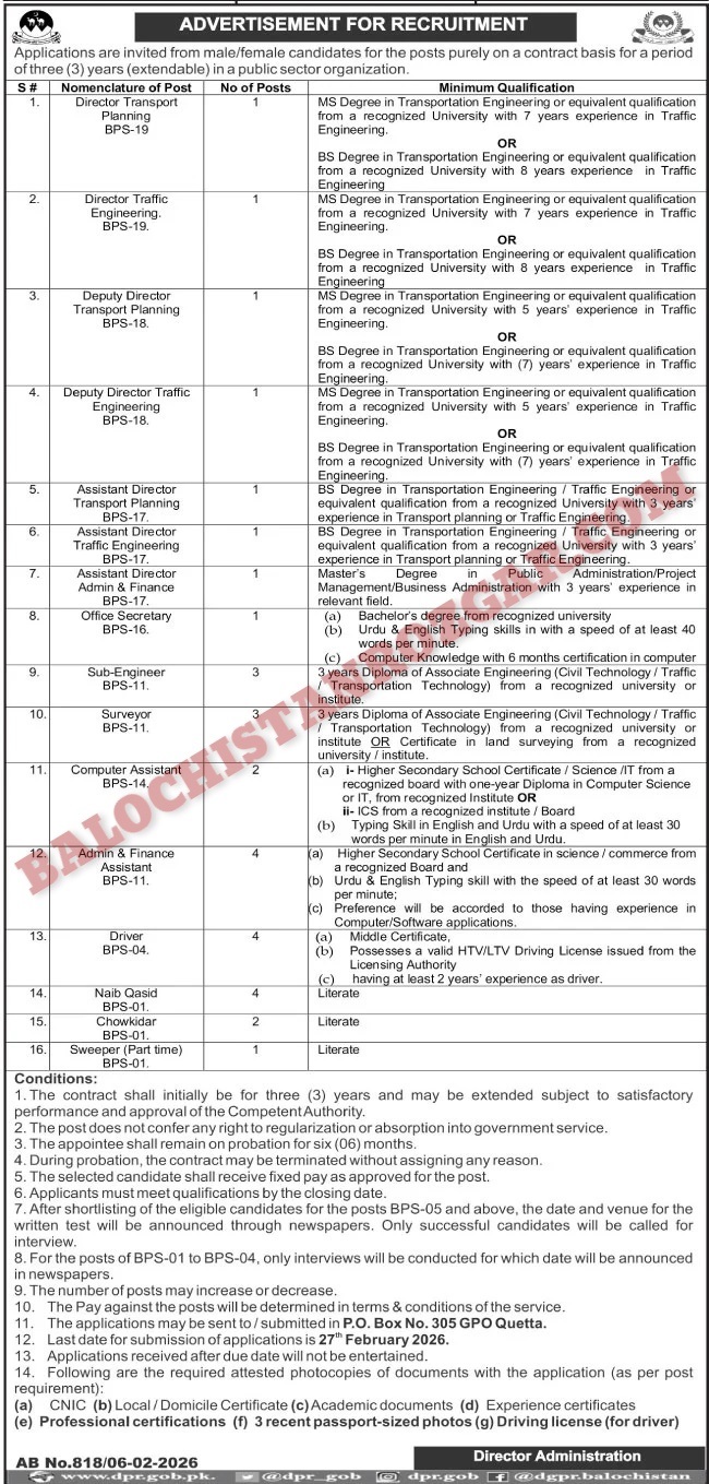 The deadline to submit applications for Public Sector Organization Balochistan Jobs 2026 is 27 Feb 2026. It is important to apply before this date, as no applications will be accepted after the deadline. Any applications received after this date will be rejected, so be sure to submit yours on time! Don’t miss out on this opportunity.