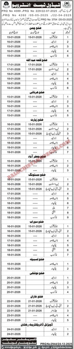 School Education Department Balochistan Non Teaching Test Interviews 2026 NEW