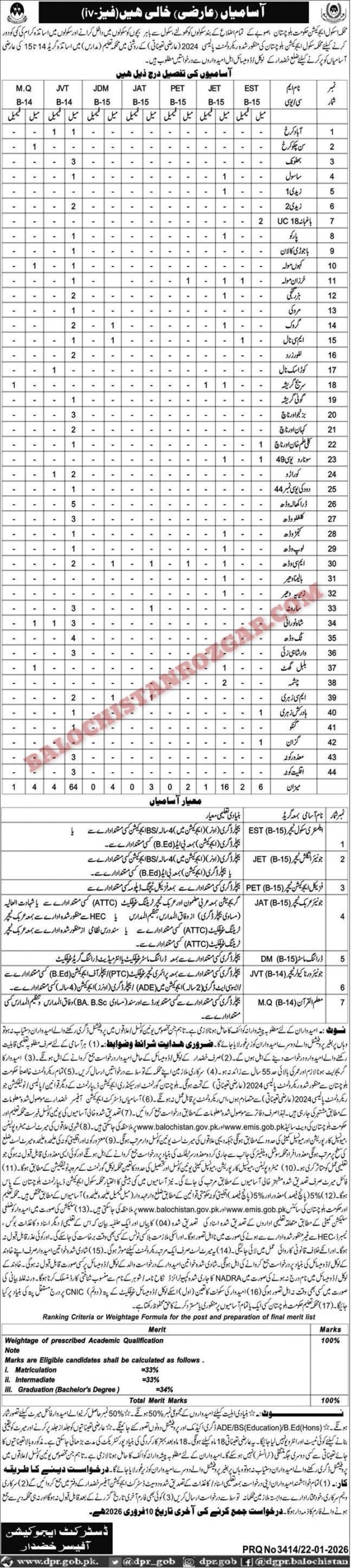 This is the best opportunity for eligible and professional candidates to apply for these Education Department Khuzdar jobs 2026. Education Department offering Following job vacancies In Khuzdar. These jobs were announced Jang Newspaper. we have taken the job advertisement there. The Both male and female candidates are eligible to apply for these Education Department Khuzdar Jobs 2026. Candidates who meet the qualification and experience requirements can apply for these jobs. Application procedure for these jobs is defined below, and interested candidates are advised to apply before the closing date after the deadline of the post no application shall be entertained.