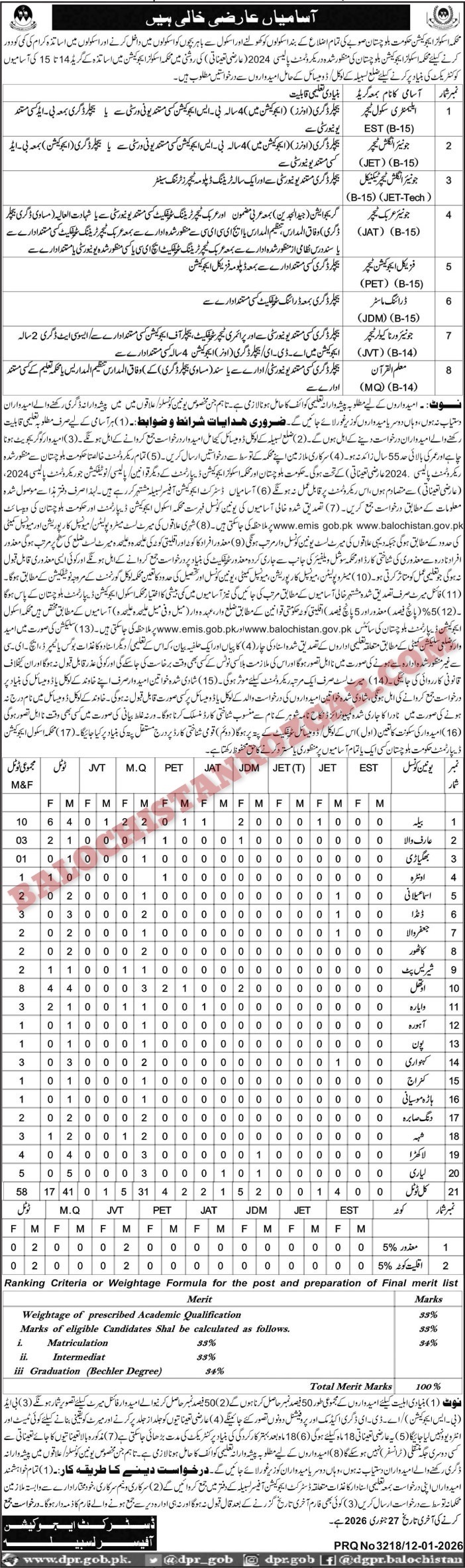 Balochistan Jobs / Education Department Balochistan / Lasbela Jobs