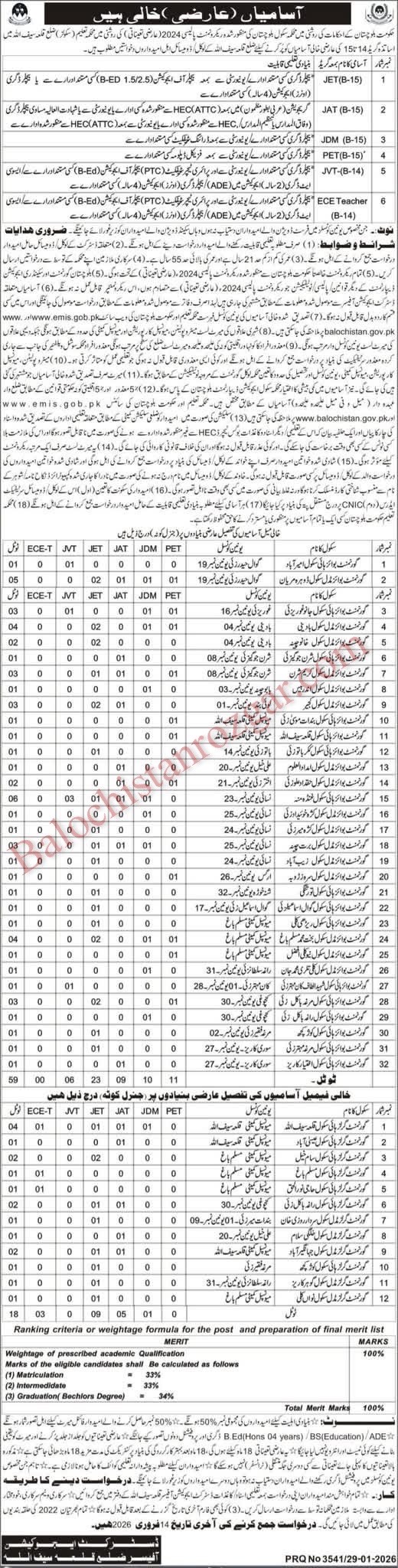 This is the best opportunity for eligible and professional candidates to apply for these Education Department Qilla Saifullah jobs 2026. Education Department offering Following job vacancies In Qilla Saifullah Balochistan. These jobs were announced Jang Newspaper. we have taken the job advertisement there. The Both male and female candidates are eligible to apply for these Education Department Qilla Saifullah Jobs 2026. Candidates who meet the qualification and experience requirements can apply for these jobs. Application procedure for these jobs is defined below, and interested candidates are advised to apply before the closing date after the deadline of the post no application shall be entertained.