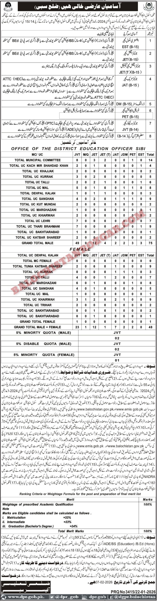 If you are interested to apply for these jobs in Education Department Sibi 2026, it is essential to follow the complete application procedure as defined in the job advertisement below and can get these Education Department Sibi Jobs 2026 after the complete recruitment process.