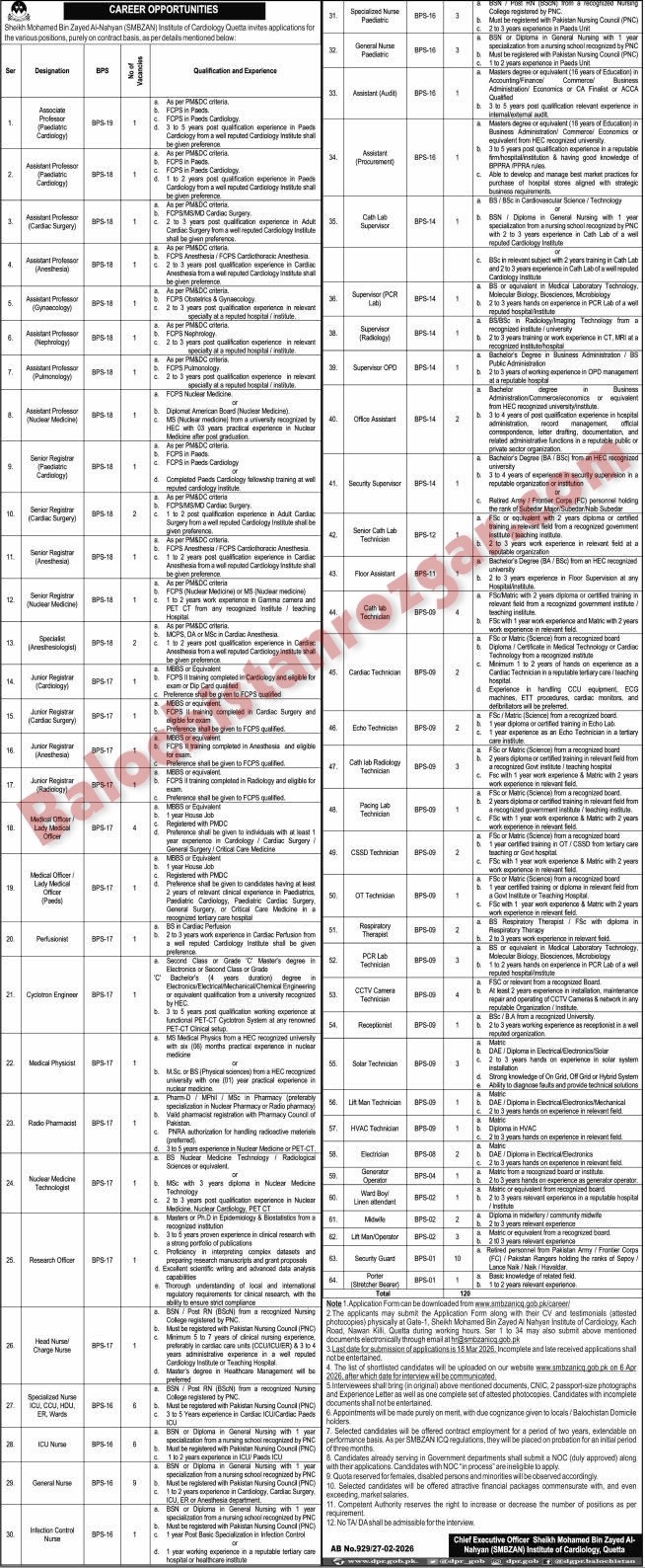 Sheikh Muhammad Bin Zayad ul Nahyan Institute Smbzan Quetta Jobs 2026 Full Time NEW
