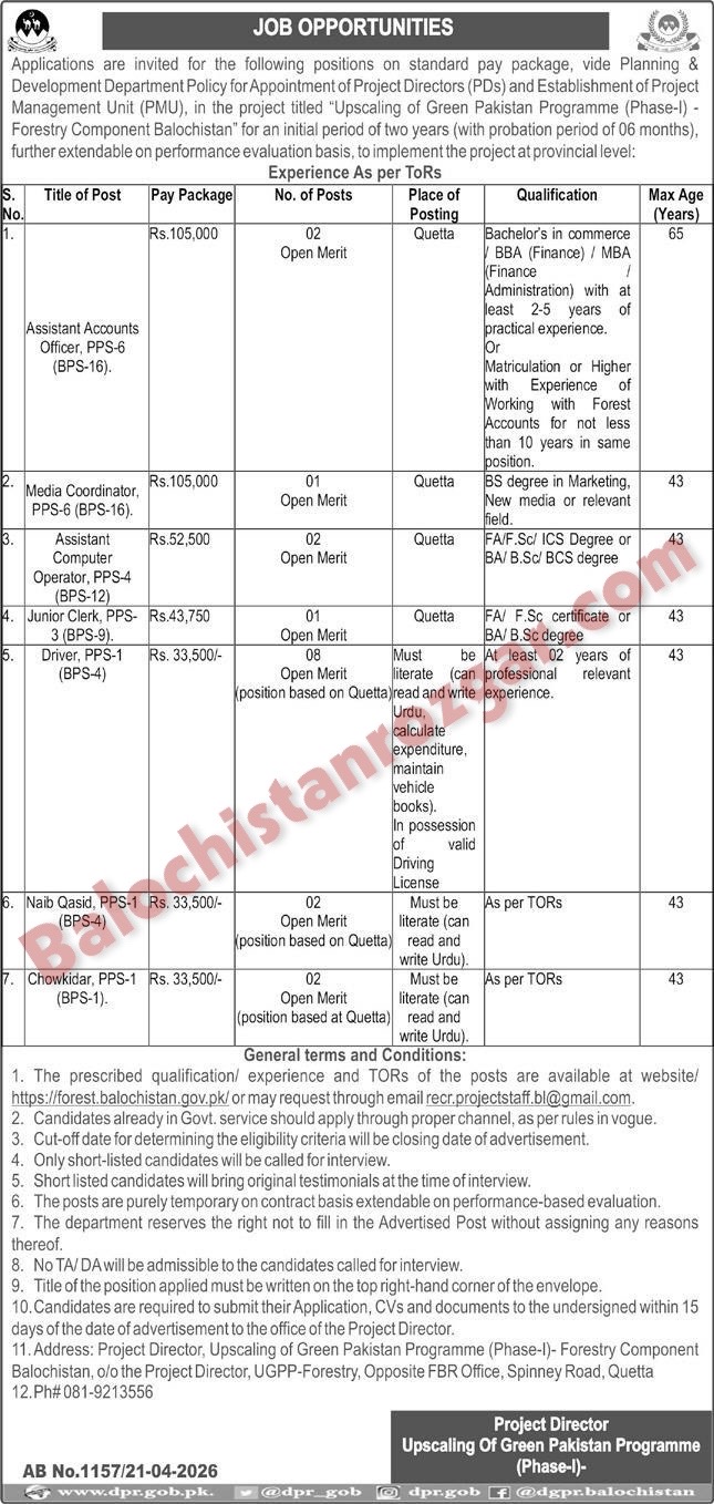 upscaling of Green Pakistan programme Jobs 2026 has recently announced job vacancies for Balochistan Locals. These Vacancies were announce in today’s local newspaper. This is an opportunity for candidates of Balochistan Local Domicile holders who seeking employment in Balochistan. Candidates from balochistan can now apply for the following jobs vacant (Candidates who fulfill the criteria can apply) It’s good to read the advertisement first Like Jobs Eligibility Criteria, Current Job Qualification Requirements and Education details for the Post which candidates are willing applying. For the following vacants the Concerned department is inviting applications from the candidates of Balochistan for the following upscaling of Green Pakistan programme 2026 jobs. If you meet the eligibility criteria and possess and other skills (if any) then you may apply.