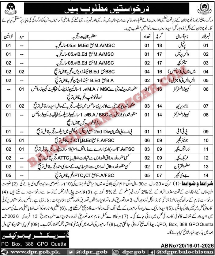 The age limit for these jobs is between 18 to 43 years (as According to Balochistan Government Age Relaxation Notification. make sure you fit within the required age range before applying. Before applying kindly read advertisement